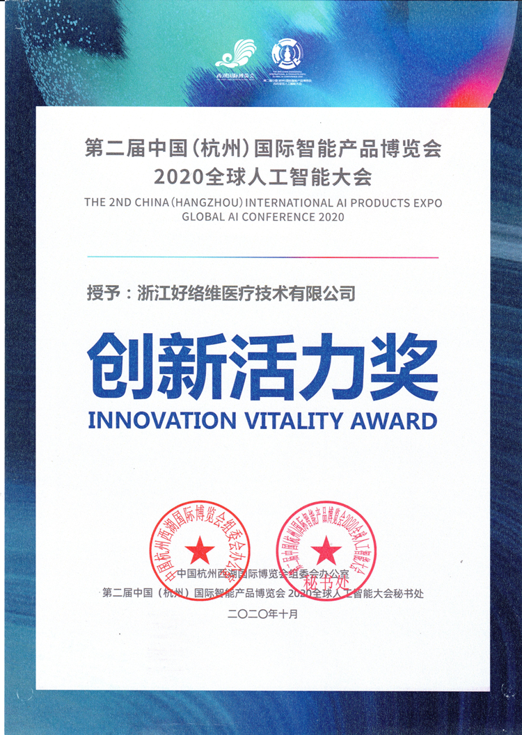 2020全球人工智能大會創(chuàng)新活力獎(jiǎng)